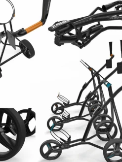 Modelled on the bestselling Golfstream vision, the blue offers the same sleek design, super easy erection and fold down but with just an indicator light to show power to the motor and a rotary dial to increase/decrease speed. In truth just like golf trolleys used to be.