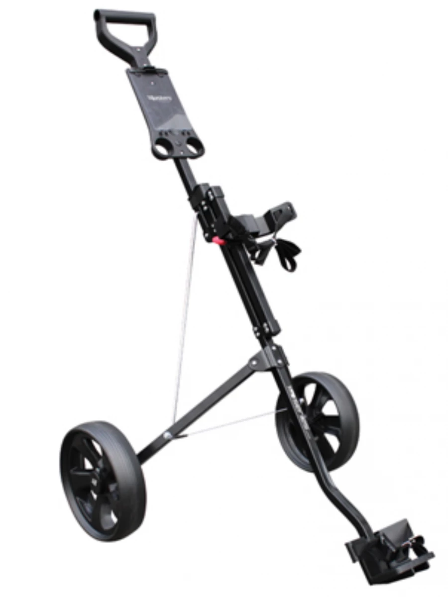 The 1 Series Junior Trolley manoeuvres comfortably thanks to it’s ergonomic handle.The unique design of the back bracket allows it to carry either a stand or cart bag with comfort.Features;Multi-feature scorecard holderHeight adjustable handleHeight adjustable stand bag-friendly bag bracketQuick release wheelsWeight: 2.75kgFolded dimensions: 88 x 39 x 34cmSpare parts availableWheel Size: 9.5″