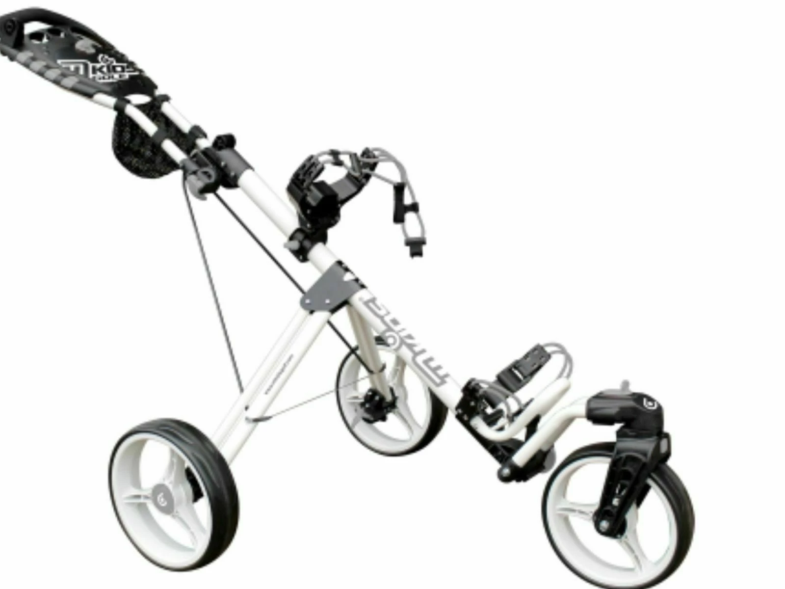 Navigate the course with ease using the MKGOLF 3 Wheel Push Trolley.The trolley has adjustable height to fit your equipment perfectly and has all the latest features and gadgets to make your round a clear winner!Fully adjustable to accommodate any size of golf bagThe upper bag support can be positioned in a high or low position to accommodate different sizes of bagQuick-fold SystemFoot BrakeLightweightCompact when collapsed making transportation and storage easy.Wheel Sizes: Front – 8″, Rear – 10.5″